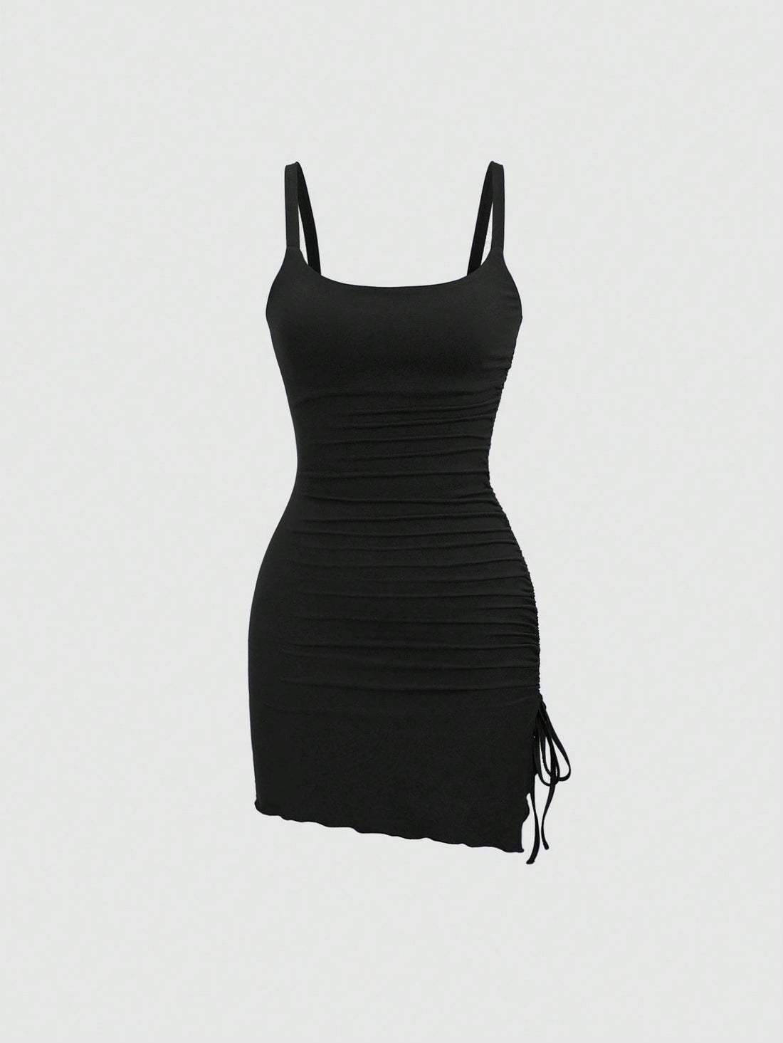 Details: Ruched, Drawstring, SplitBody: UnlinedNeckline: Spaghetti StrapStyle: SexyType: CamiWaist Line: Natural(Mid Waist)Occasion: DatingHem Shaped: SlitLined...