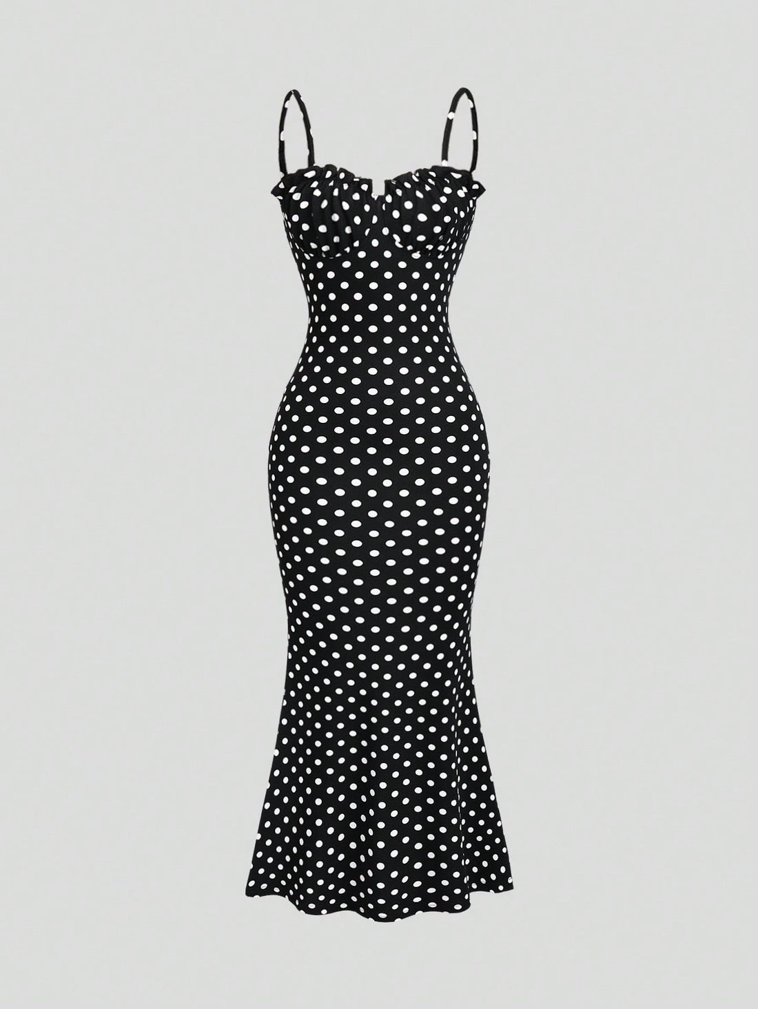 Details: Frill, Split, Ruched BustBody: UnlinedNeckline: Spaghetti StrapPattern Type: Geometric, Polka DotStyle: ElegantType: CamiWaist Line:...