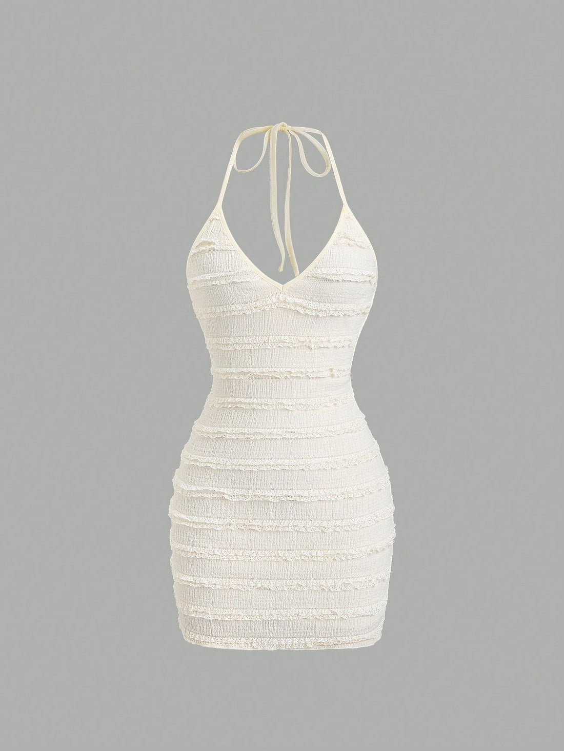 Solid Color Mini Dress Neutral Color Single Piece Halter Neck Embroidered Detail Design For Daily Styling