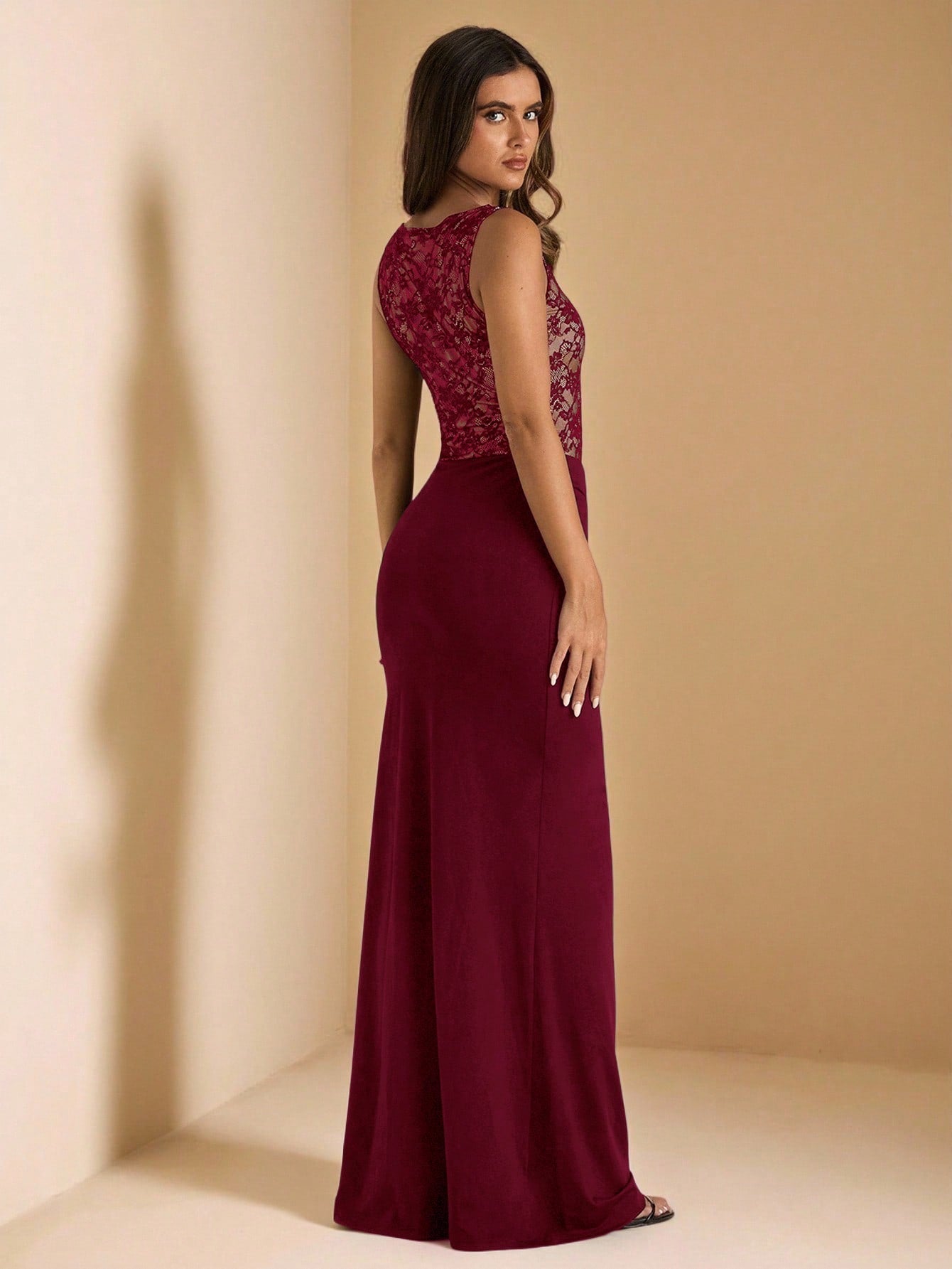 Black Sleeveless Lace Patchwork Mermaid Dress for Weddings and Special Occasions