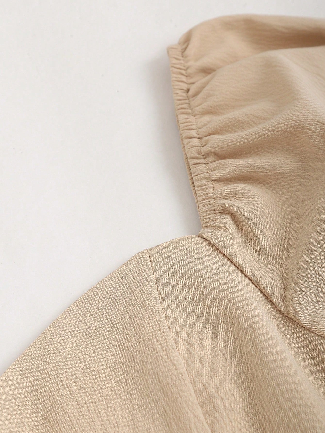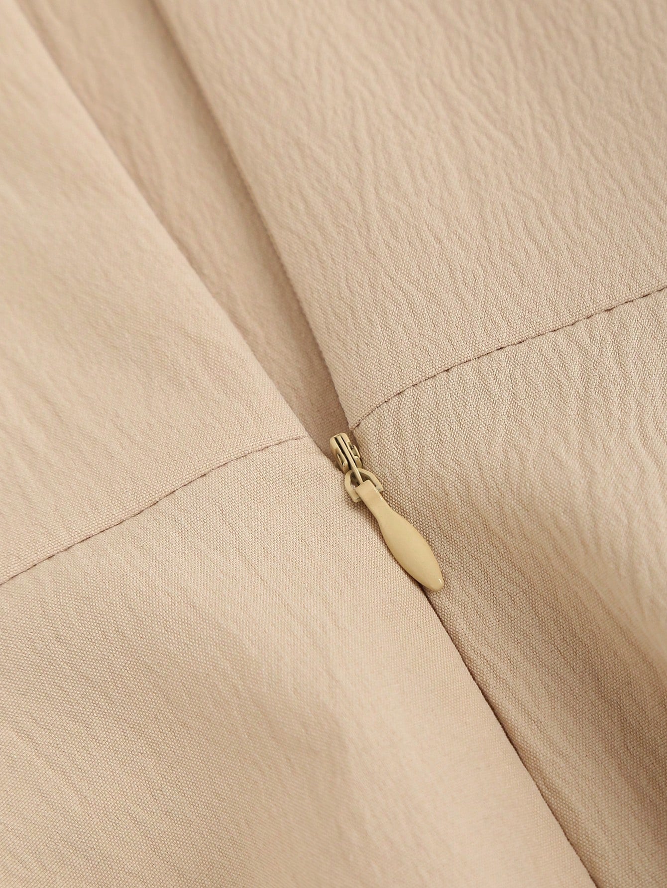 Ditsy Floral Pattern Dress Neutral Color Single Piece Ruffle Neck Design For Daily Styling