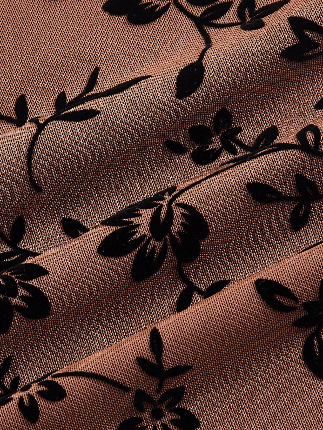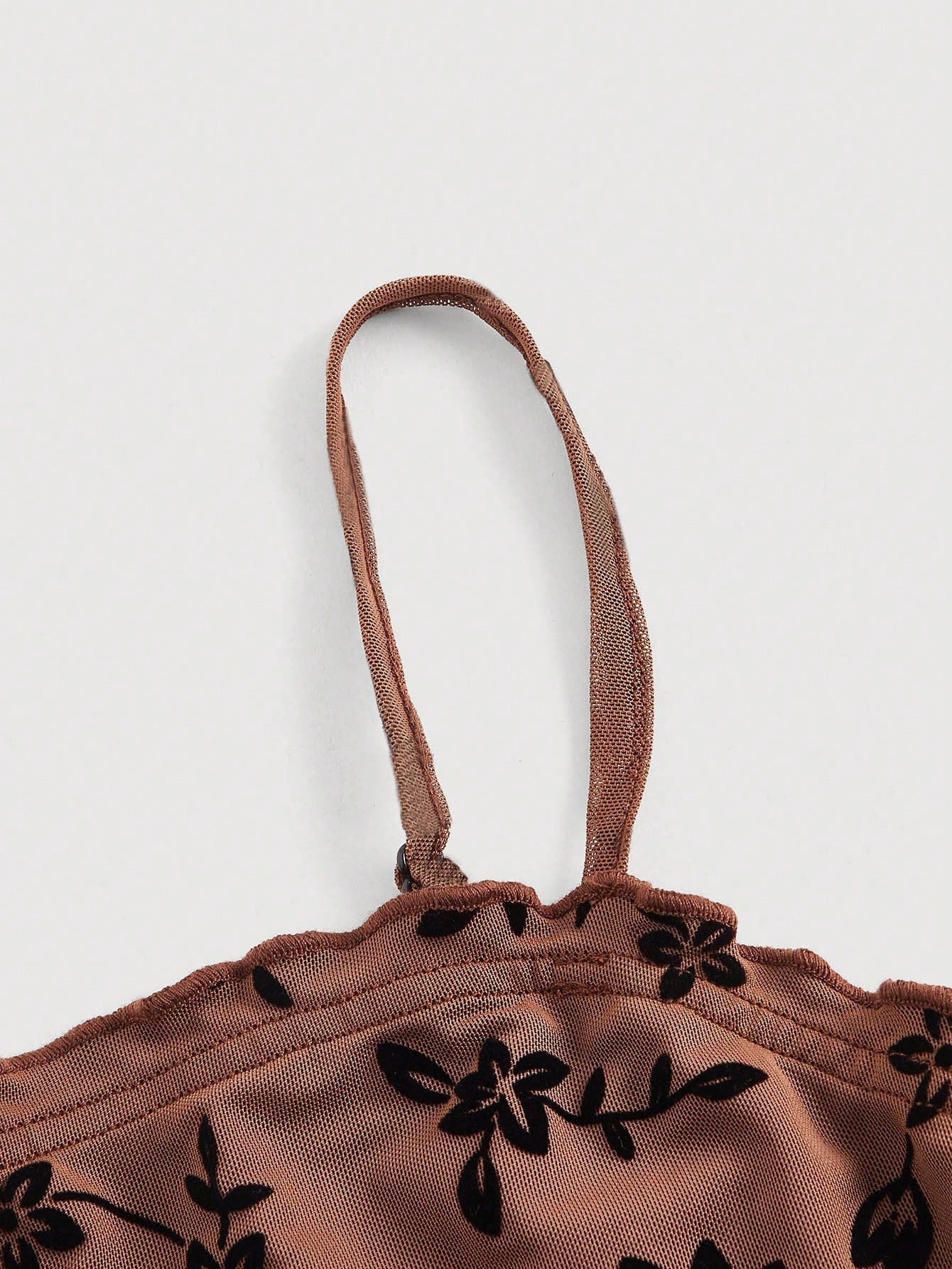 Floral Print Mesh Dress Neutral Color Single Piece Sleeveless Cami Design For Daily Styling