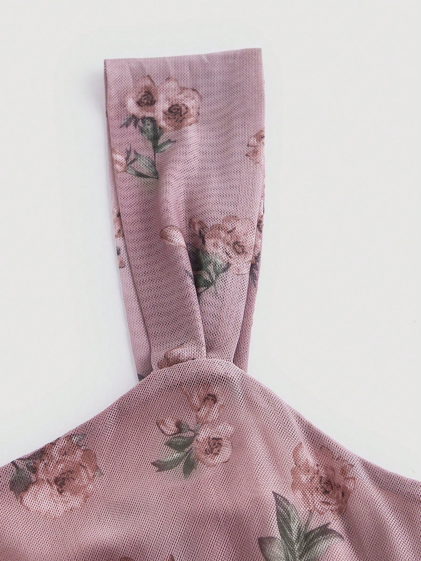 Floral Print Dress Baby Blue Color Single Piece Sleeveless Flared Hem Design For General Occasions