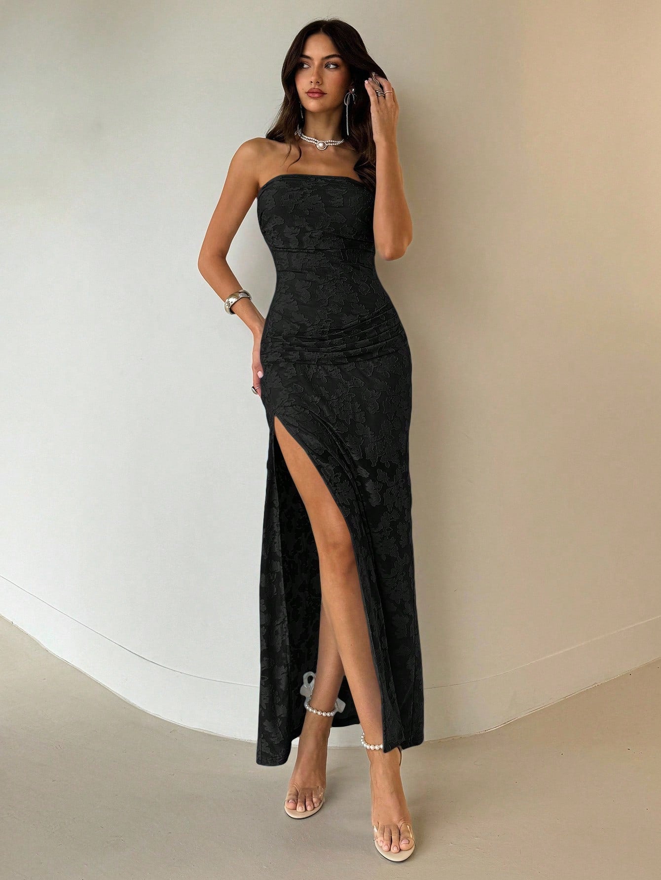 Details: Backless, Zipper, Split Thigh