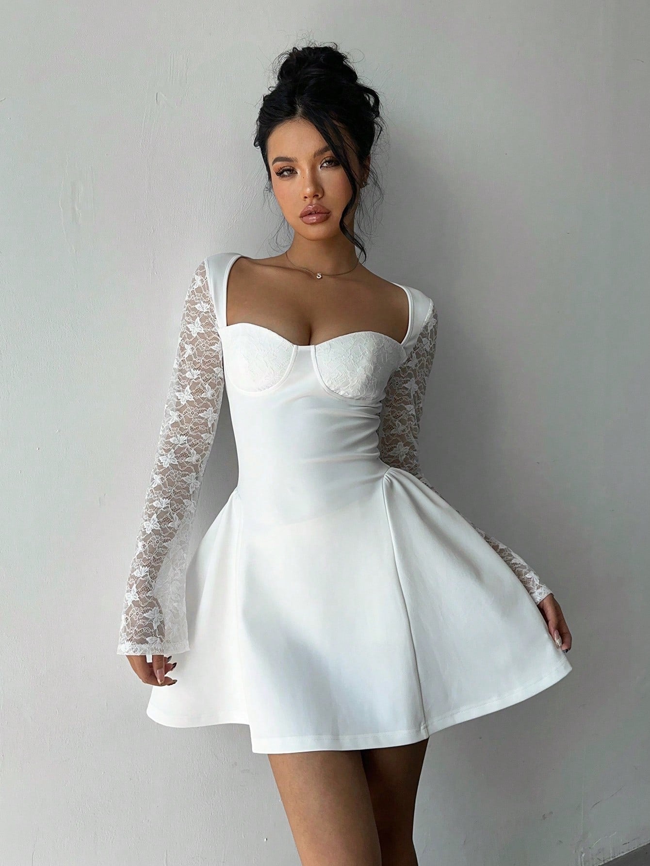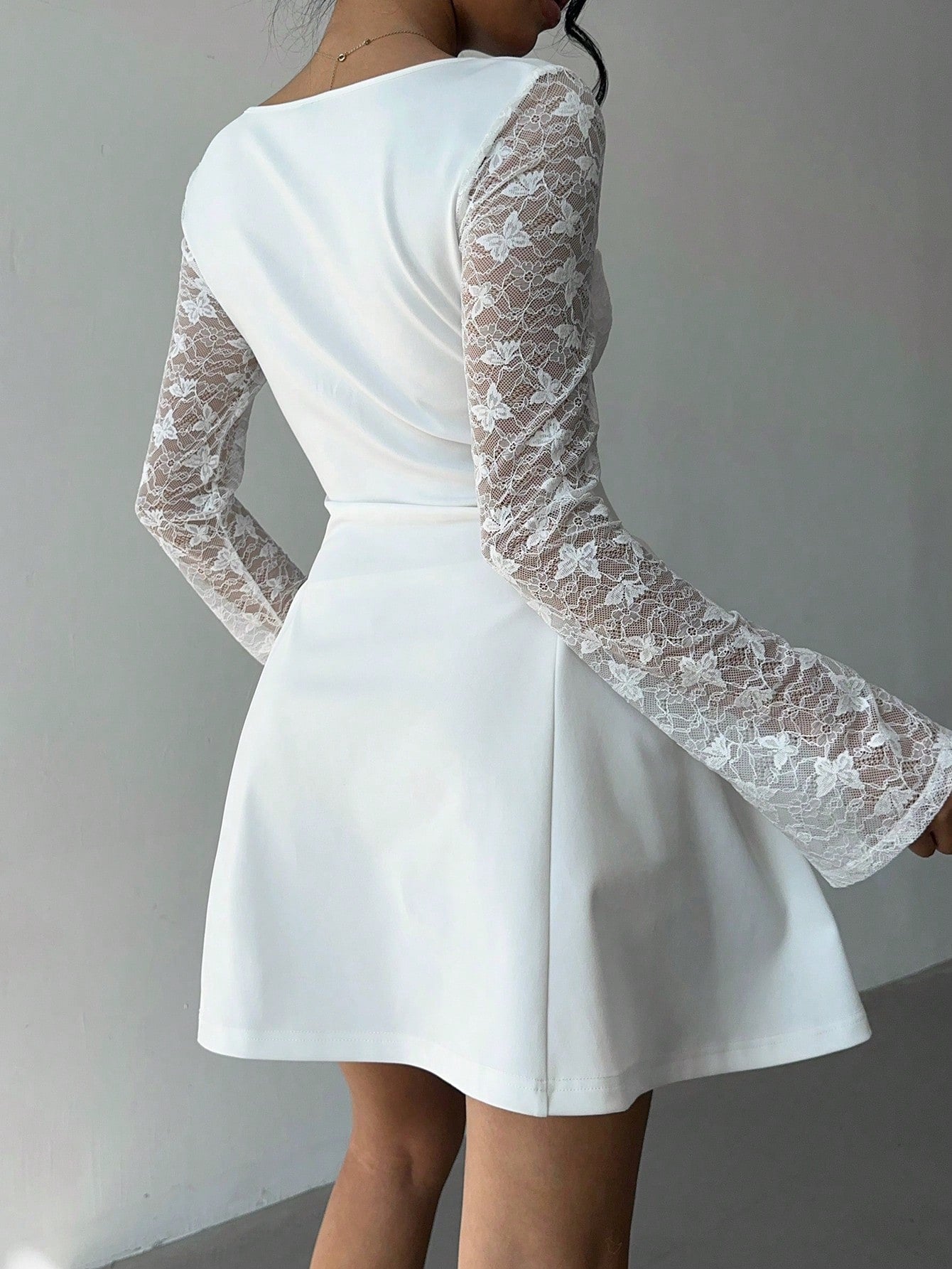 Long Sleeve A-Line Mini Dress with Flounce Hem and Bell Cuffs for Seasonal Events