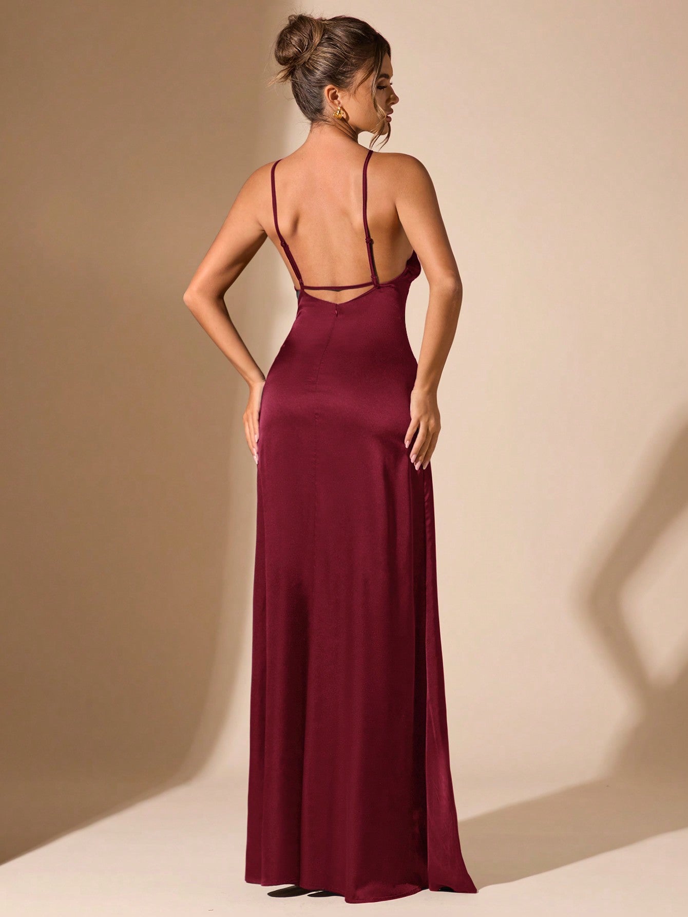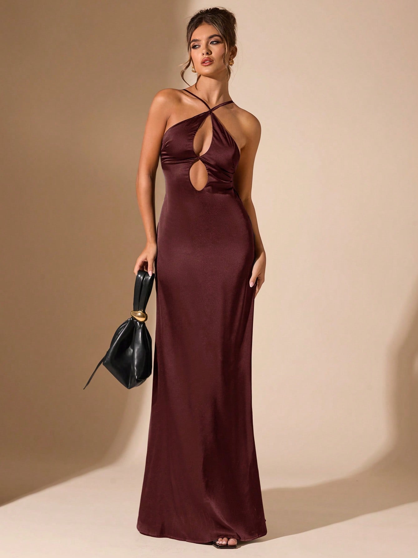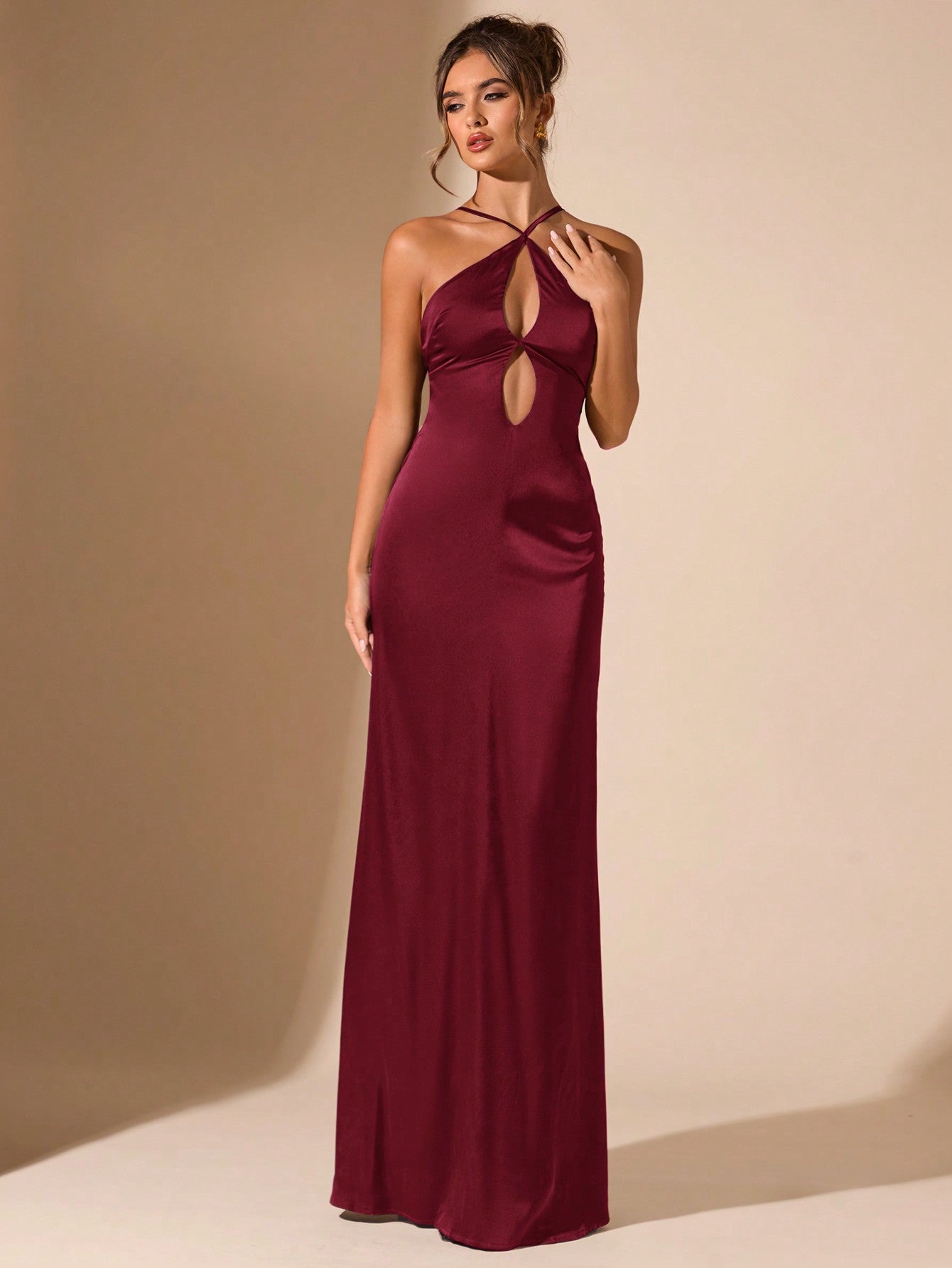 Minimalist Halter Neck Backless Maxi Dress for Graduation, Formal, Cocktail, and Wedding Guest Occasions