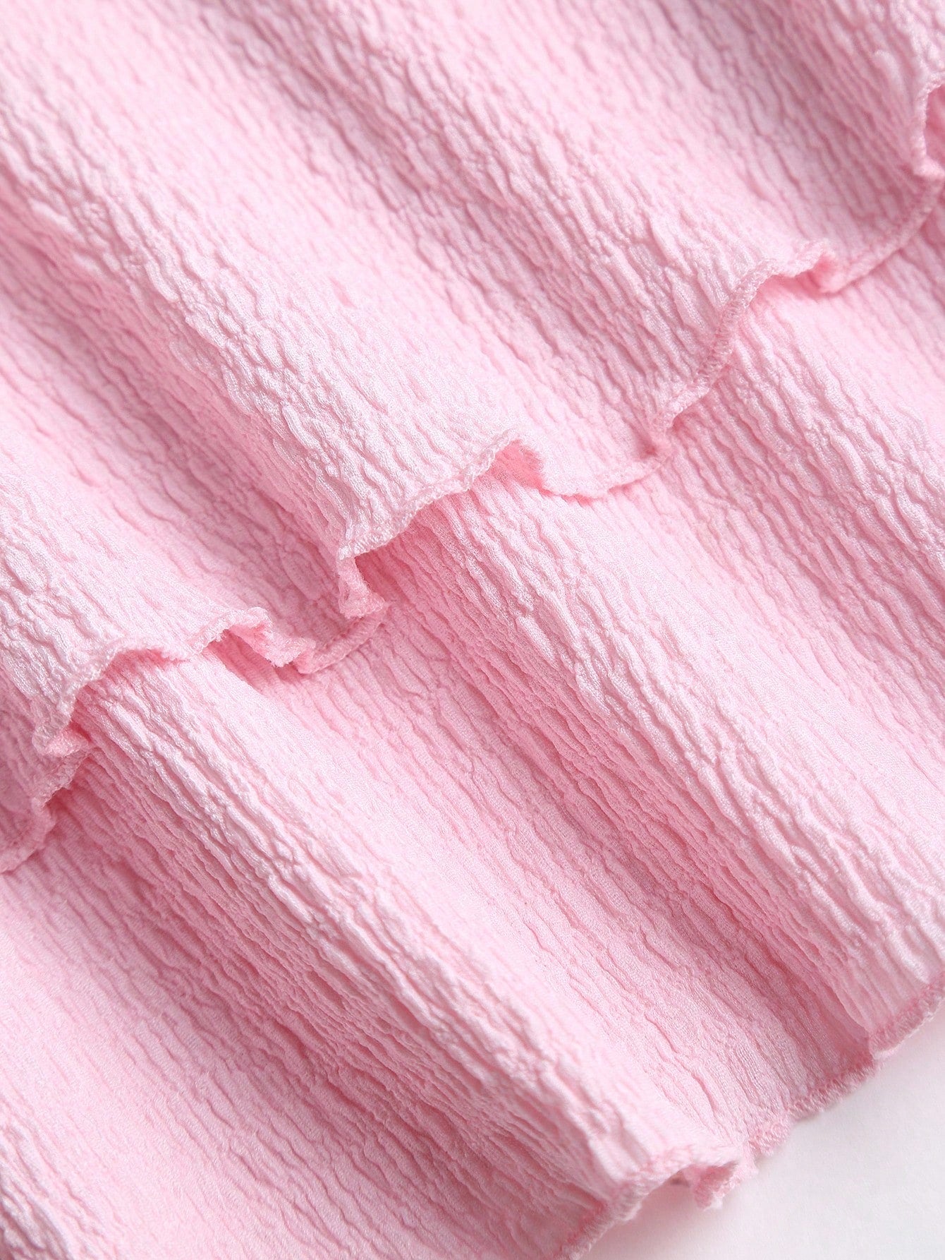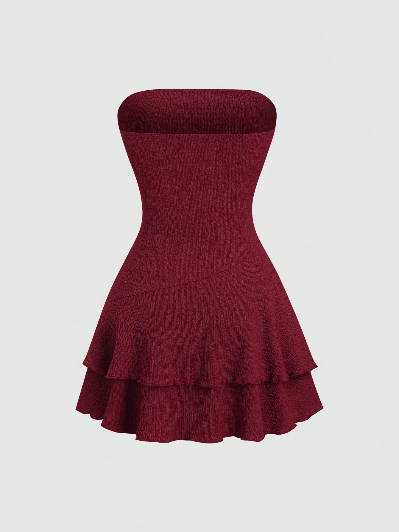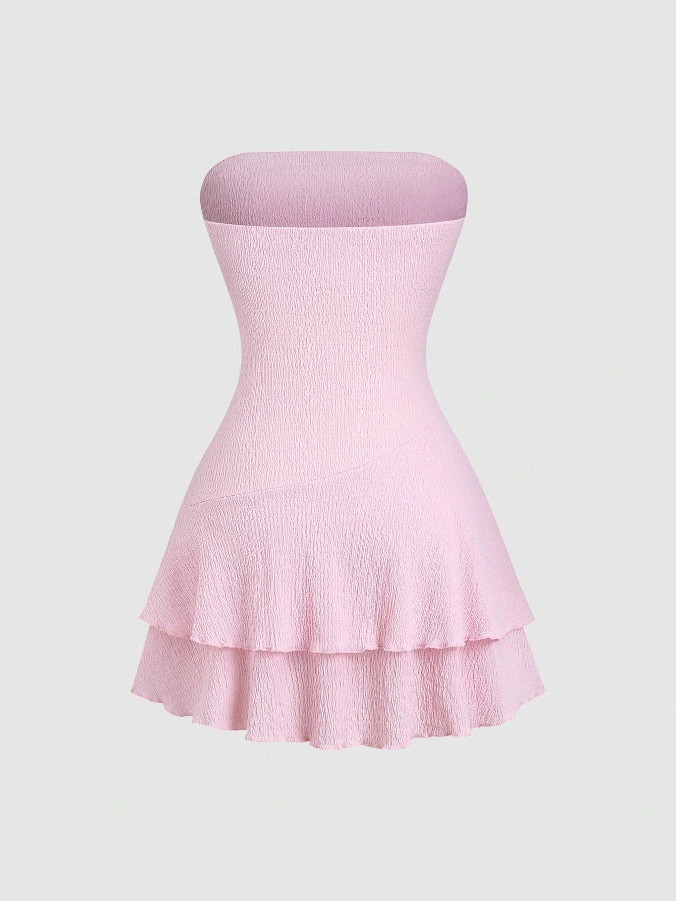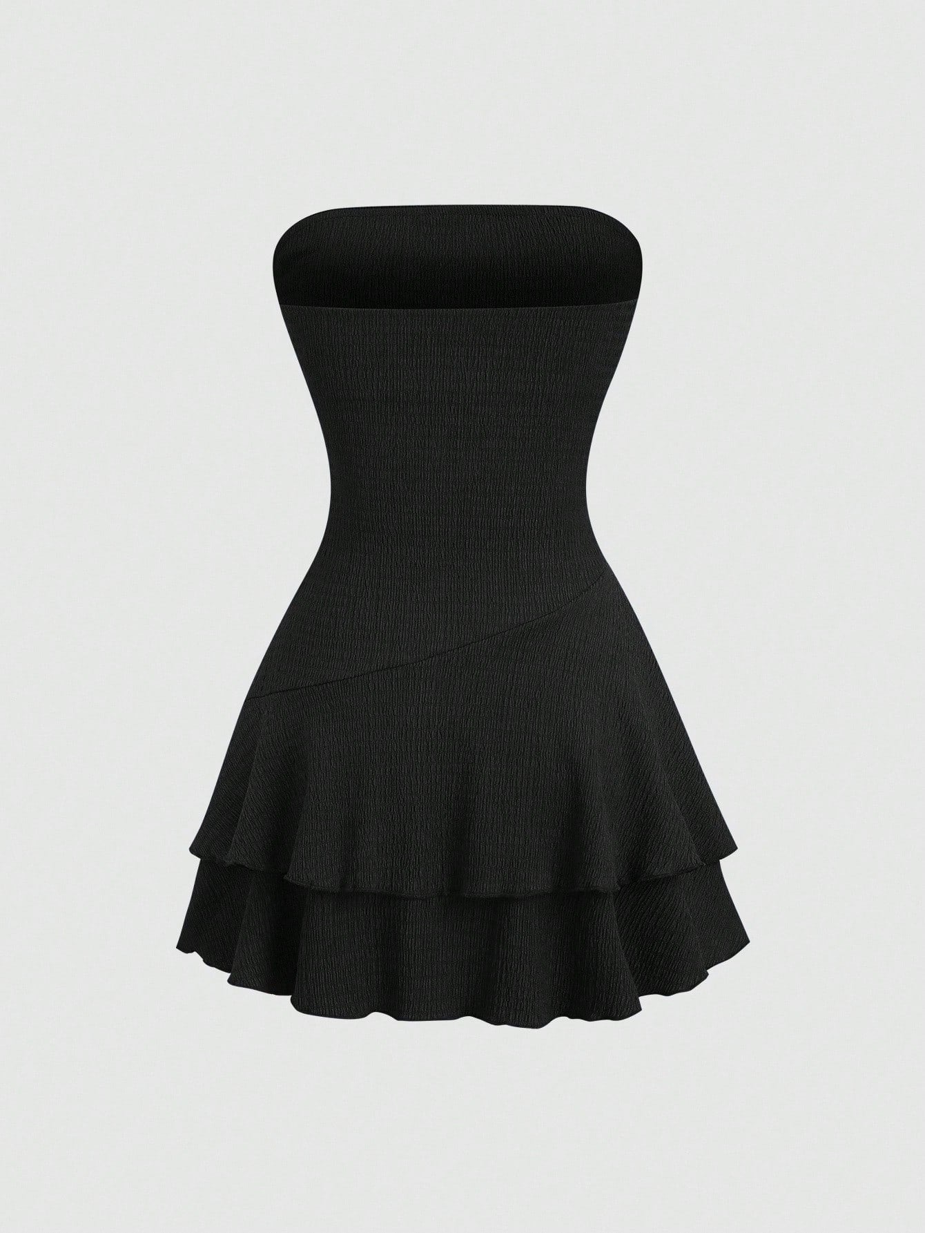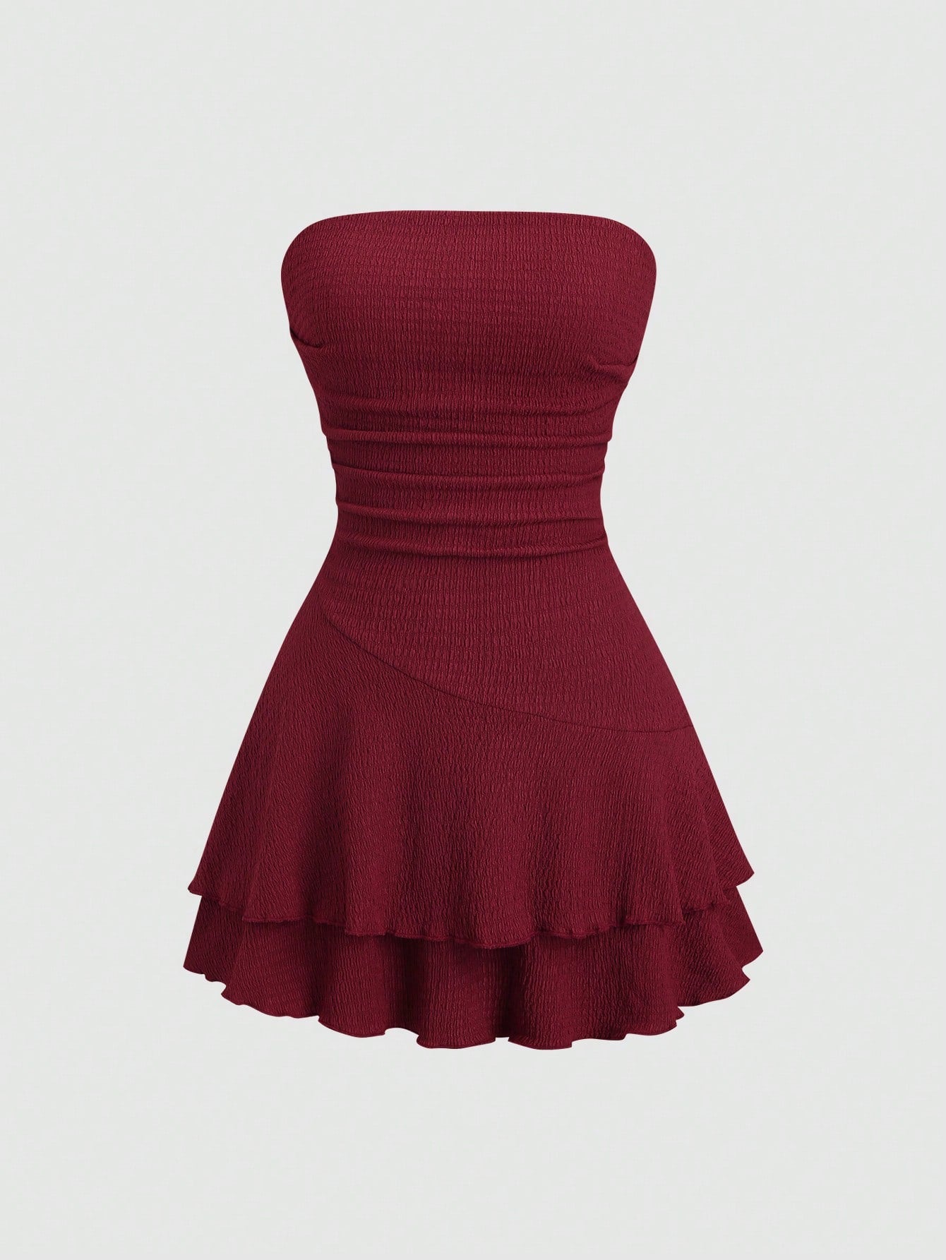 Details: Ruched, Ruffle Hem, Tiered Layer