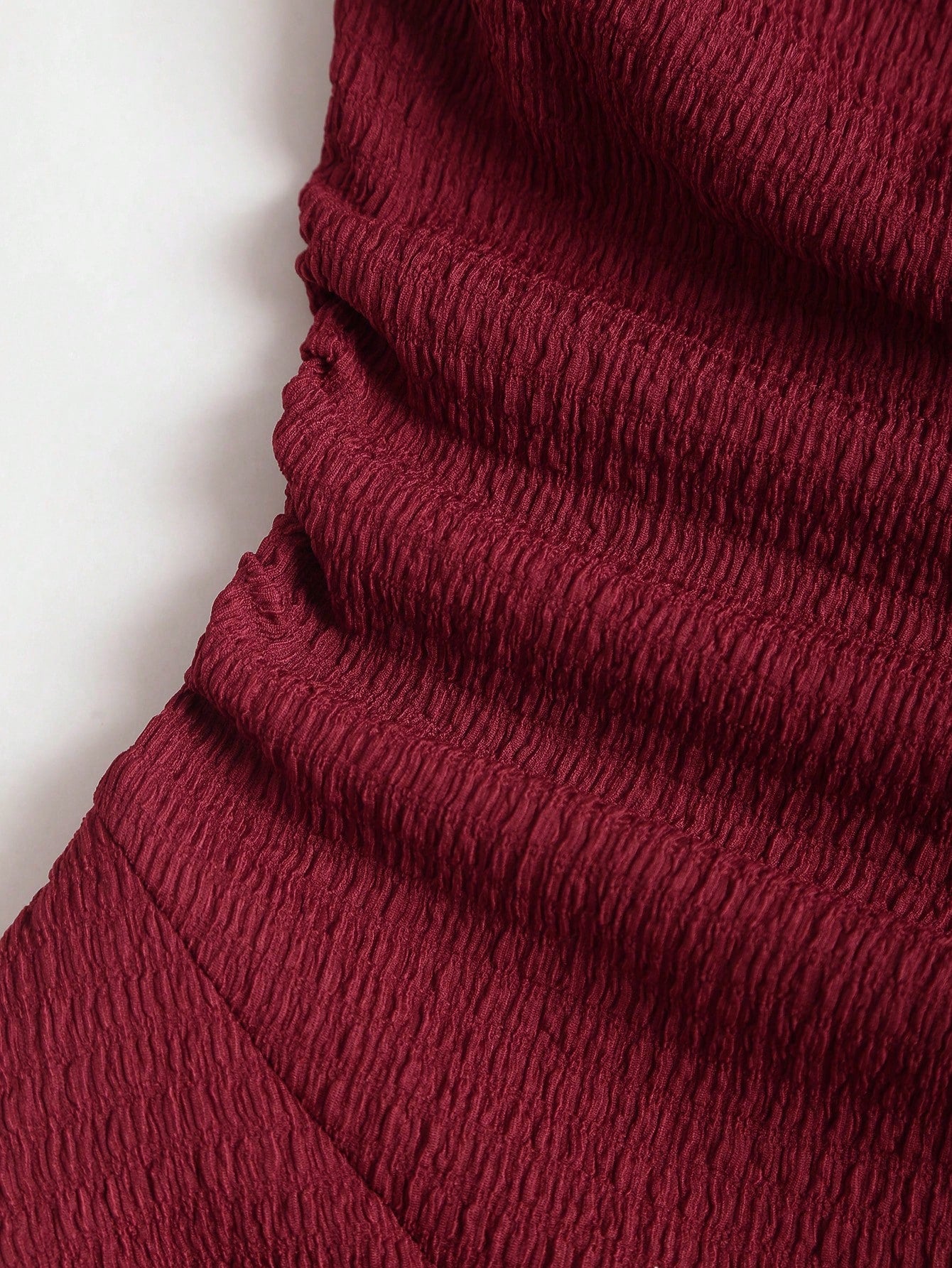 Textured Fabric Dress Neutral Color Single Piece Sleeveless Design For Daily Styling