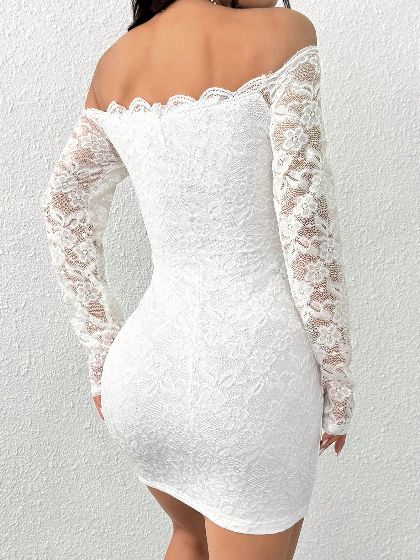 Textured Fabric Mini Dress Neutral Color Single Piece Long Sleeve Patchwork Design For General Occasions