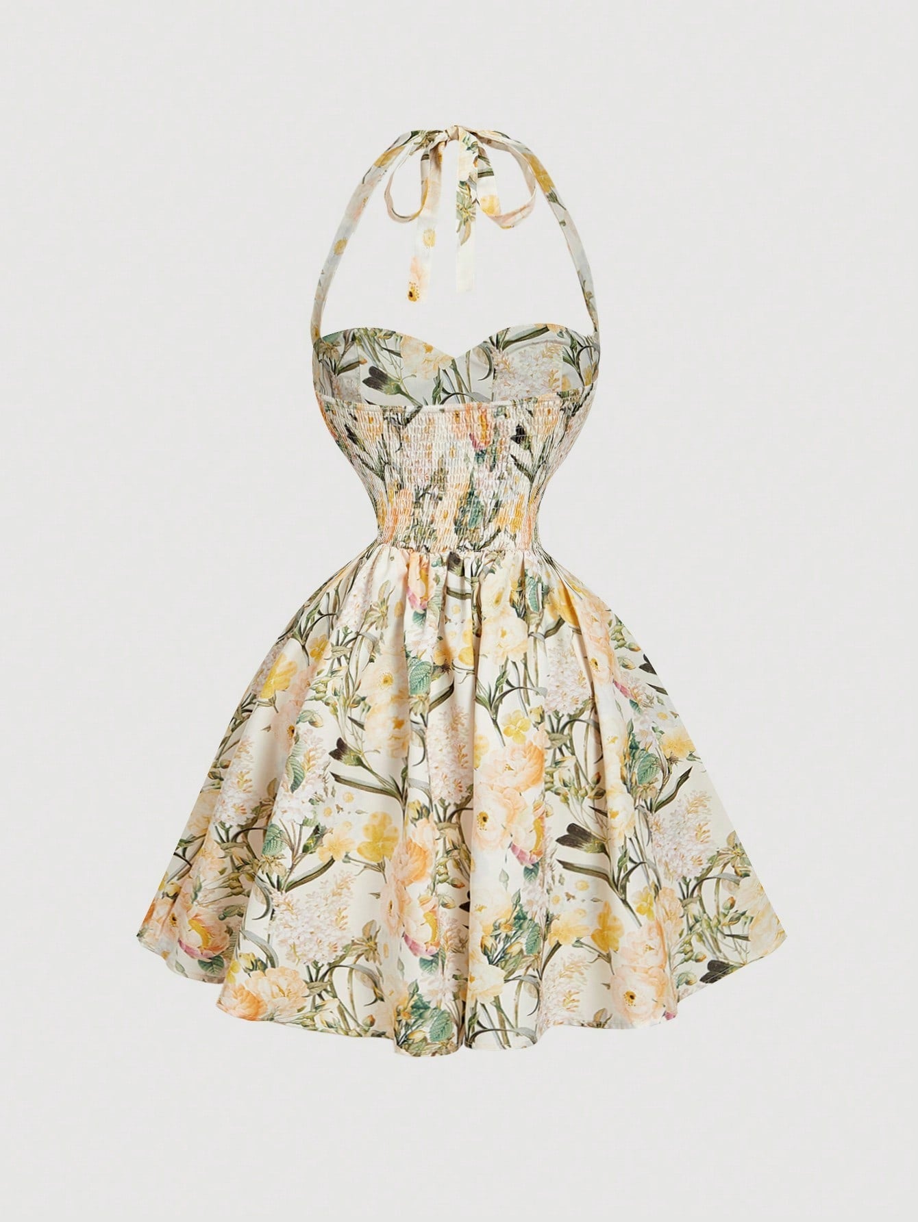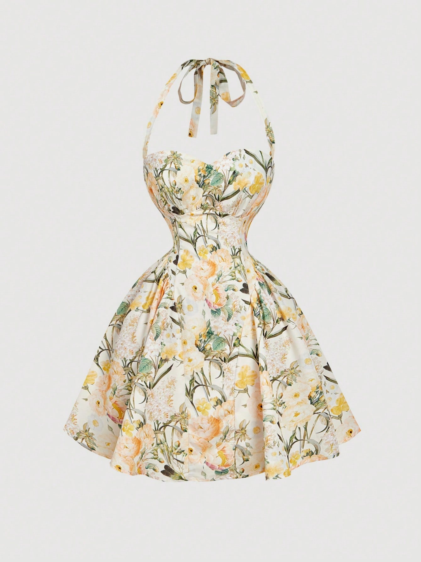 Polka Dot Pattern Long Dress Neutral Color Single Piece Bandeau Design For General Occasions