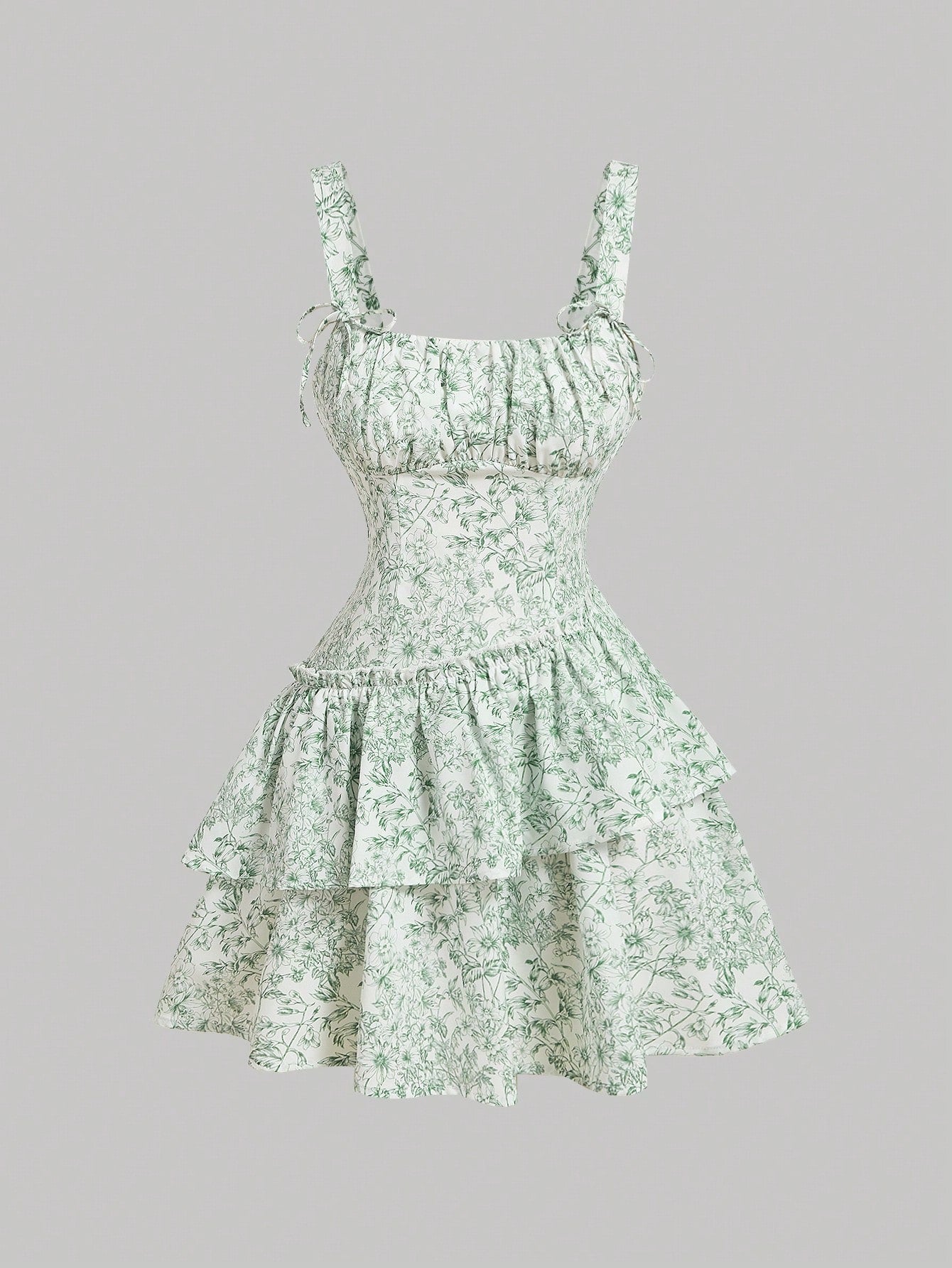 Details: Tiered Layer, Knot, Ruched Bust