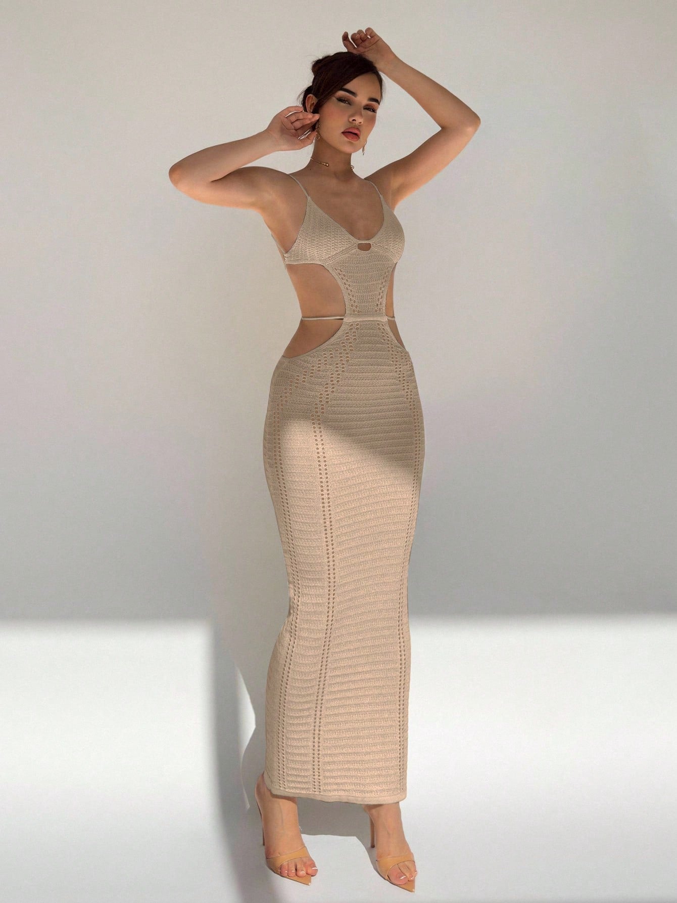 Sleeveless Knitted Slim Fit Sweater Dress with U-Neck and Hollow-Out Detail for Casual Wear