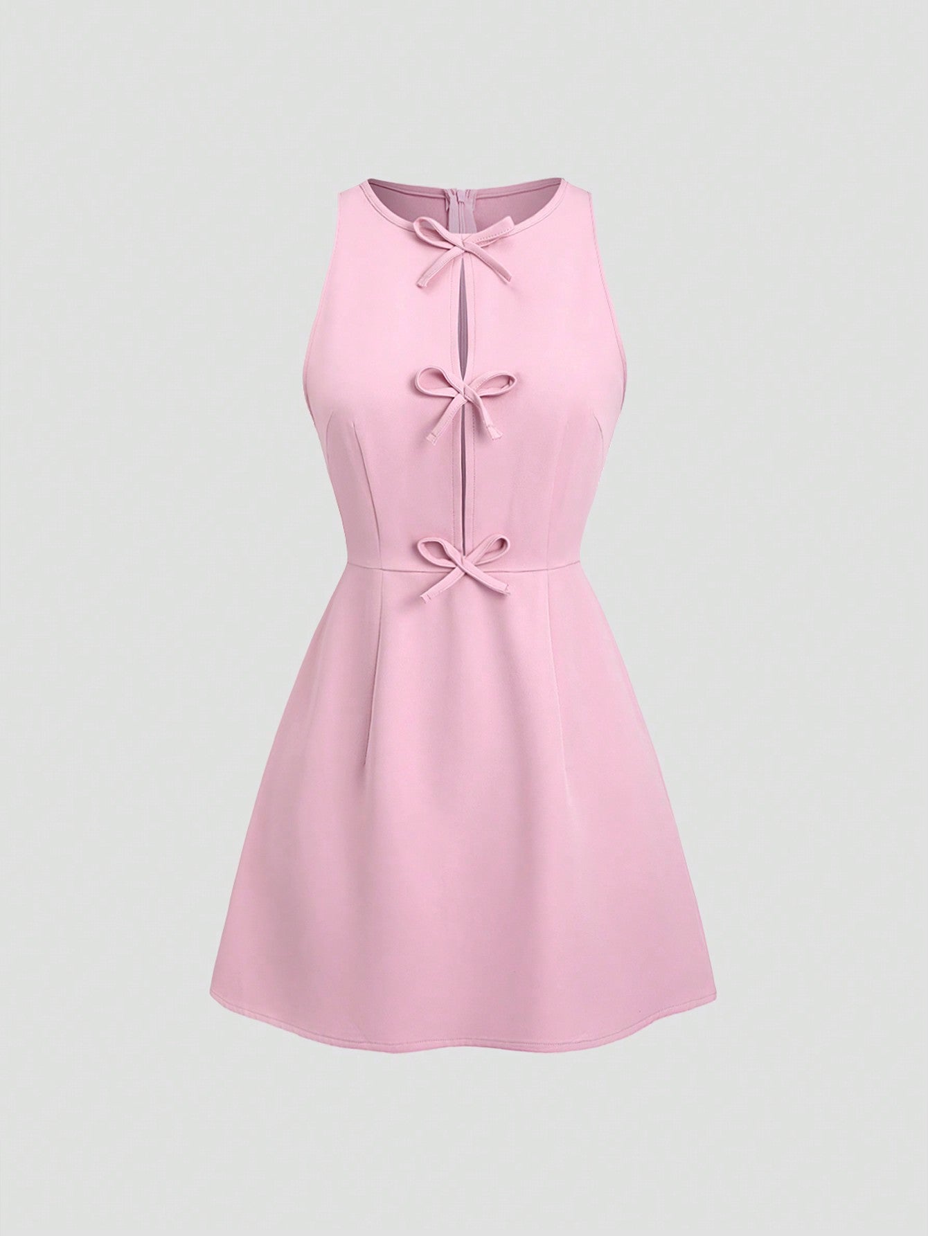Solid Color Mini Dress Neutral Color Single Piece Bow Detail A Line Design For Daily Styling