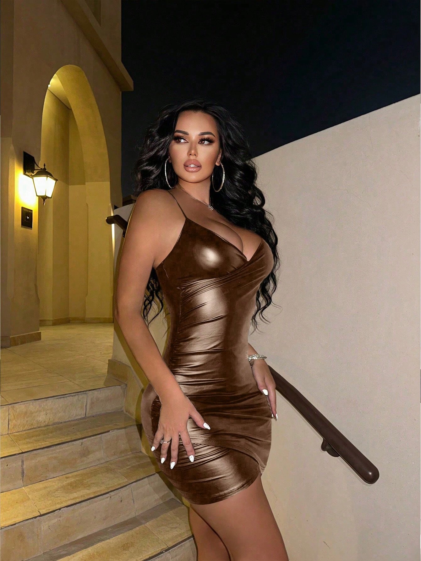 Women’s Solid Color PU Cami Dress, Lightweight Design, Single Piece, For Daily Styling