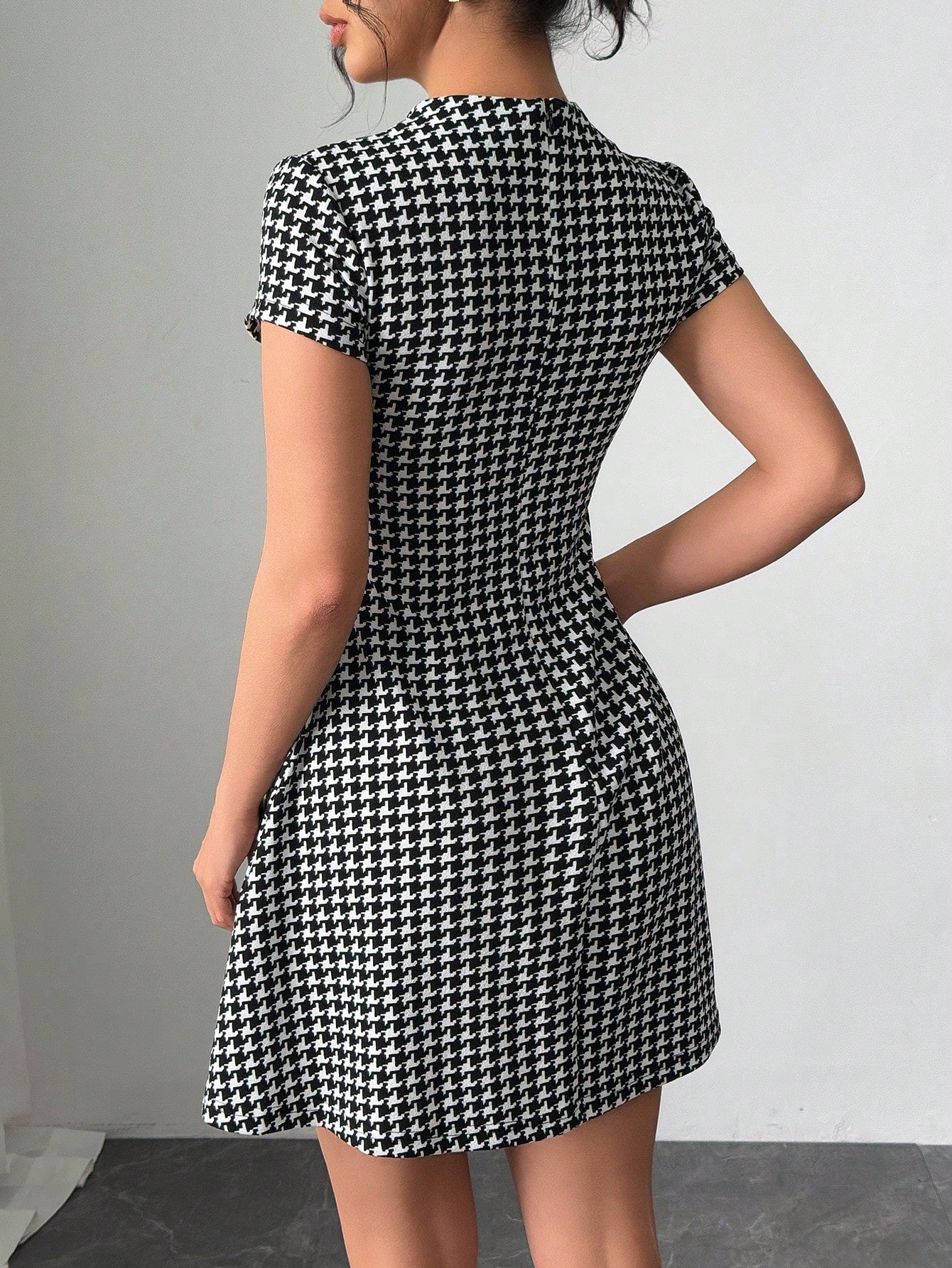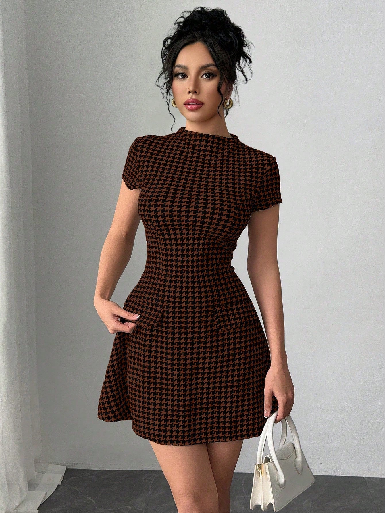 Women’s Woven Fabric Dress, Short Sleeve Design, Patterned Fabric Detail, 1 Piece, For Everyday Wear