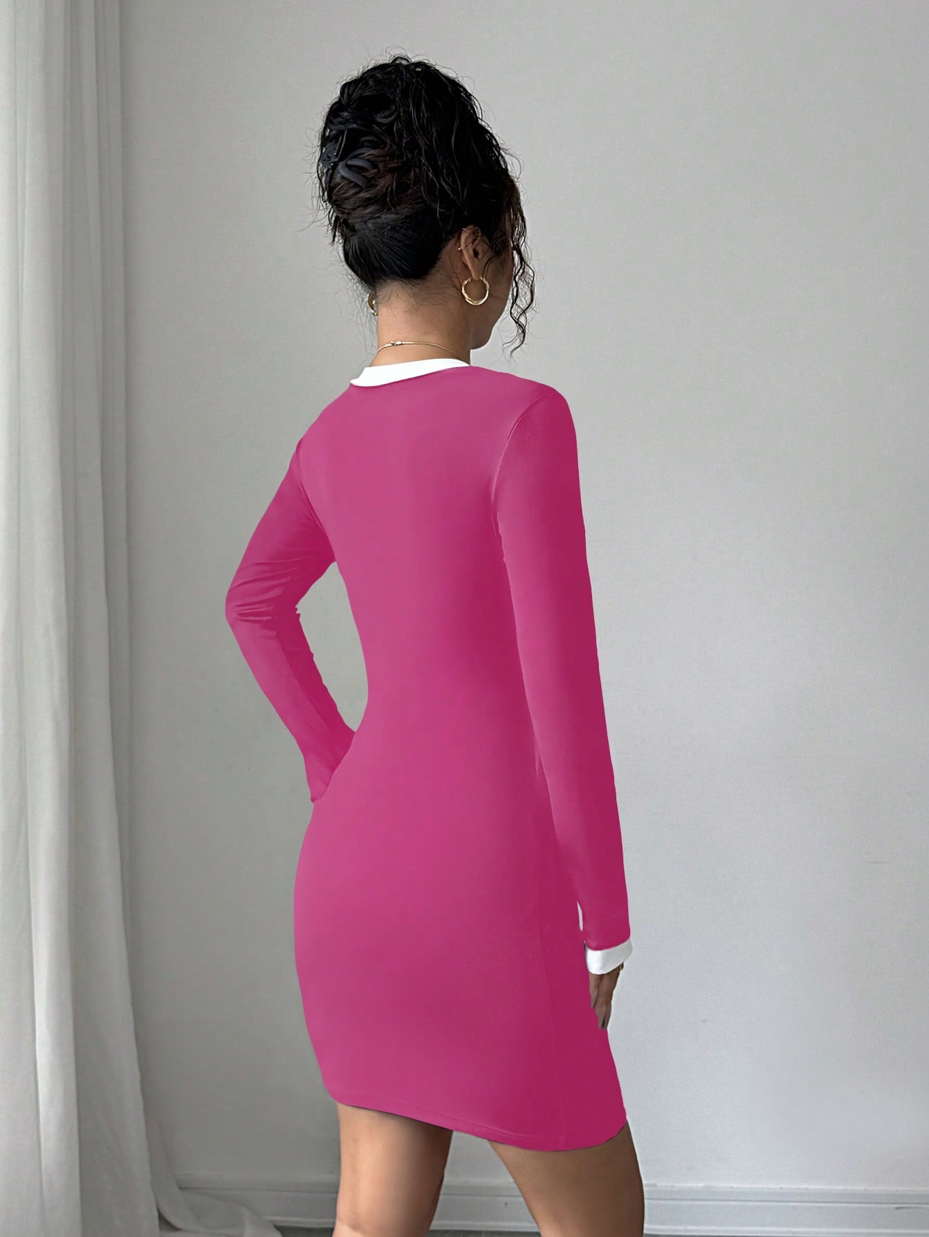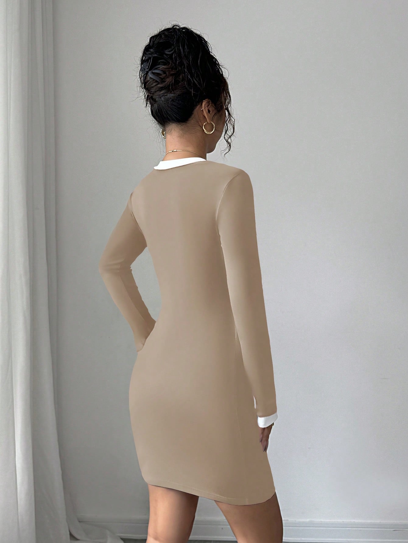 Women’s Woven Fabric Mini Dress, Long Sleeve Simple Design, 2 In 1 Style, 1 Piece, For Everyday Wear