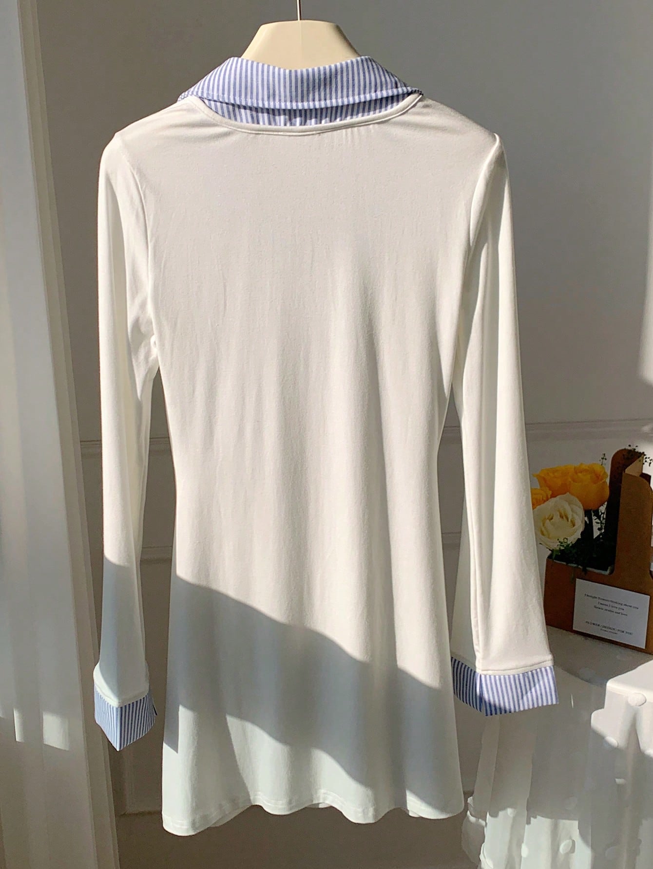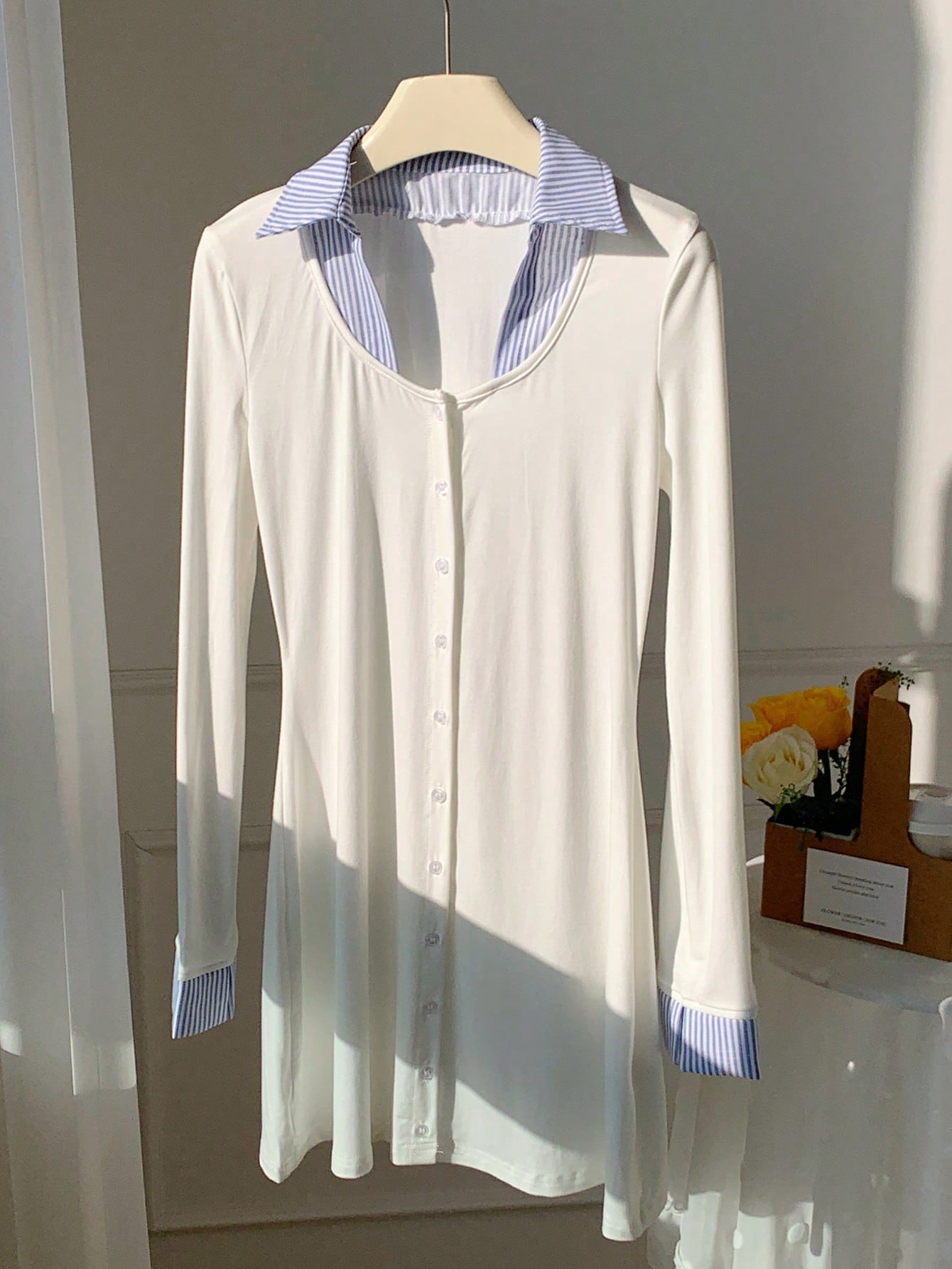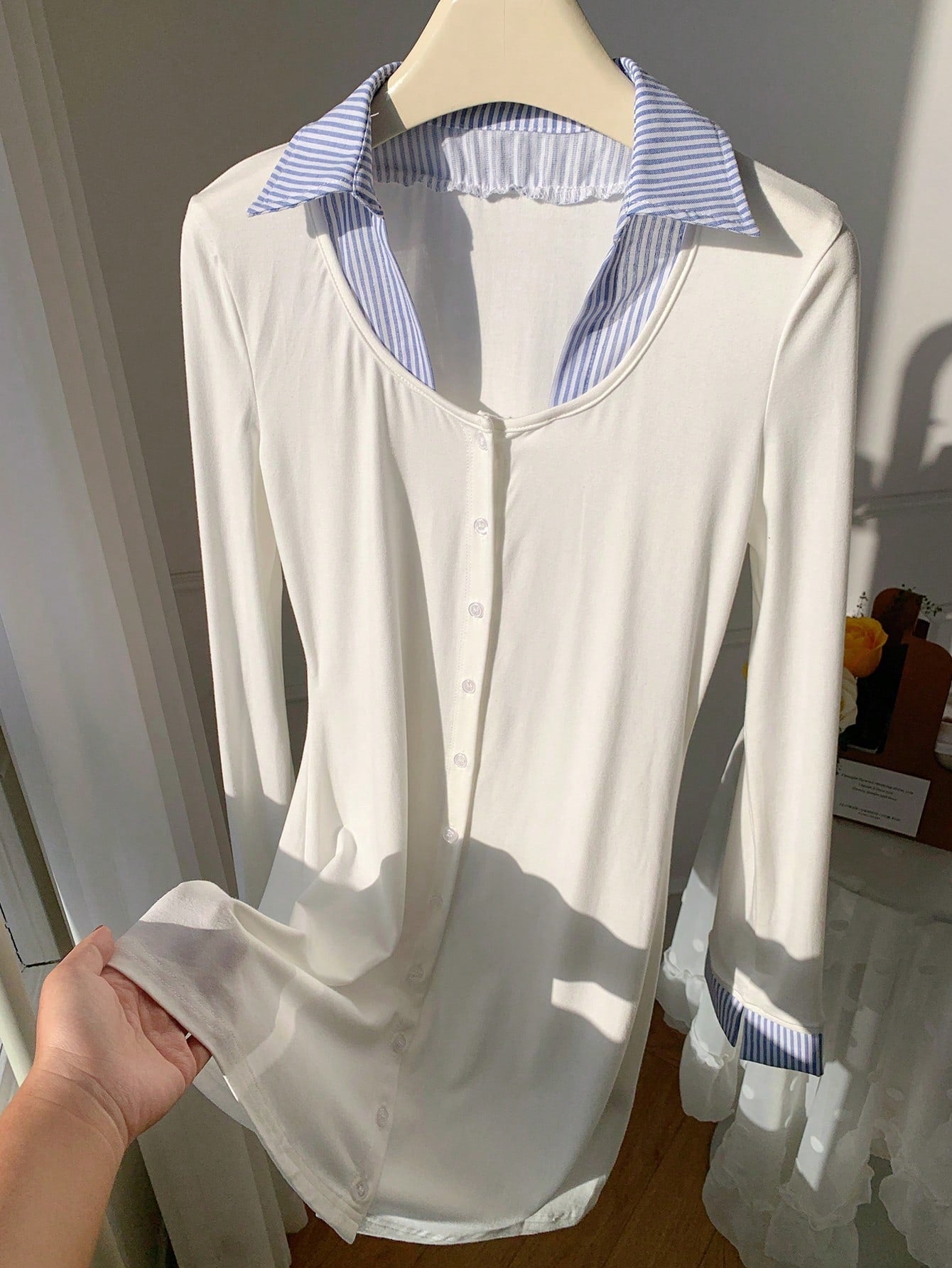 Women’s Woven Fabric Mini Dress, Long Sleeve Button Front, Patchwork Pattern Design, 1 Piece, For Casual Wear