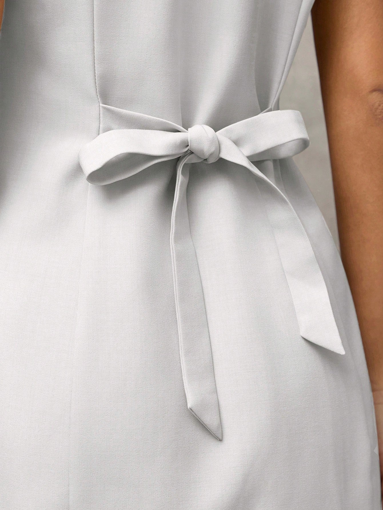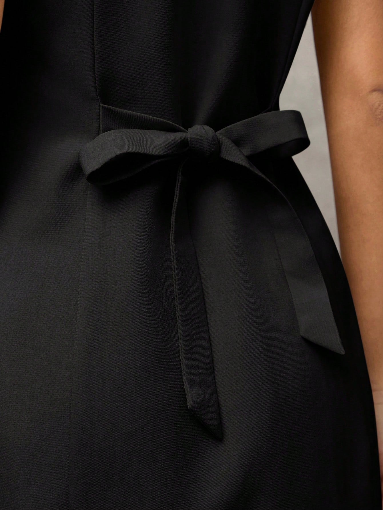 Women’s Woven Fabric Sleeveless Mini Dress, Round Neck Button Front Design, Solid Pattern, 1 Piece, For Workplace Wear